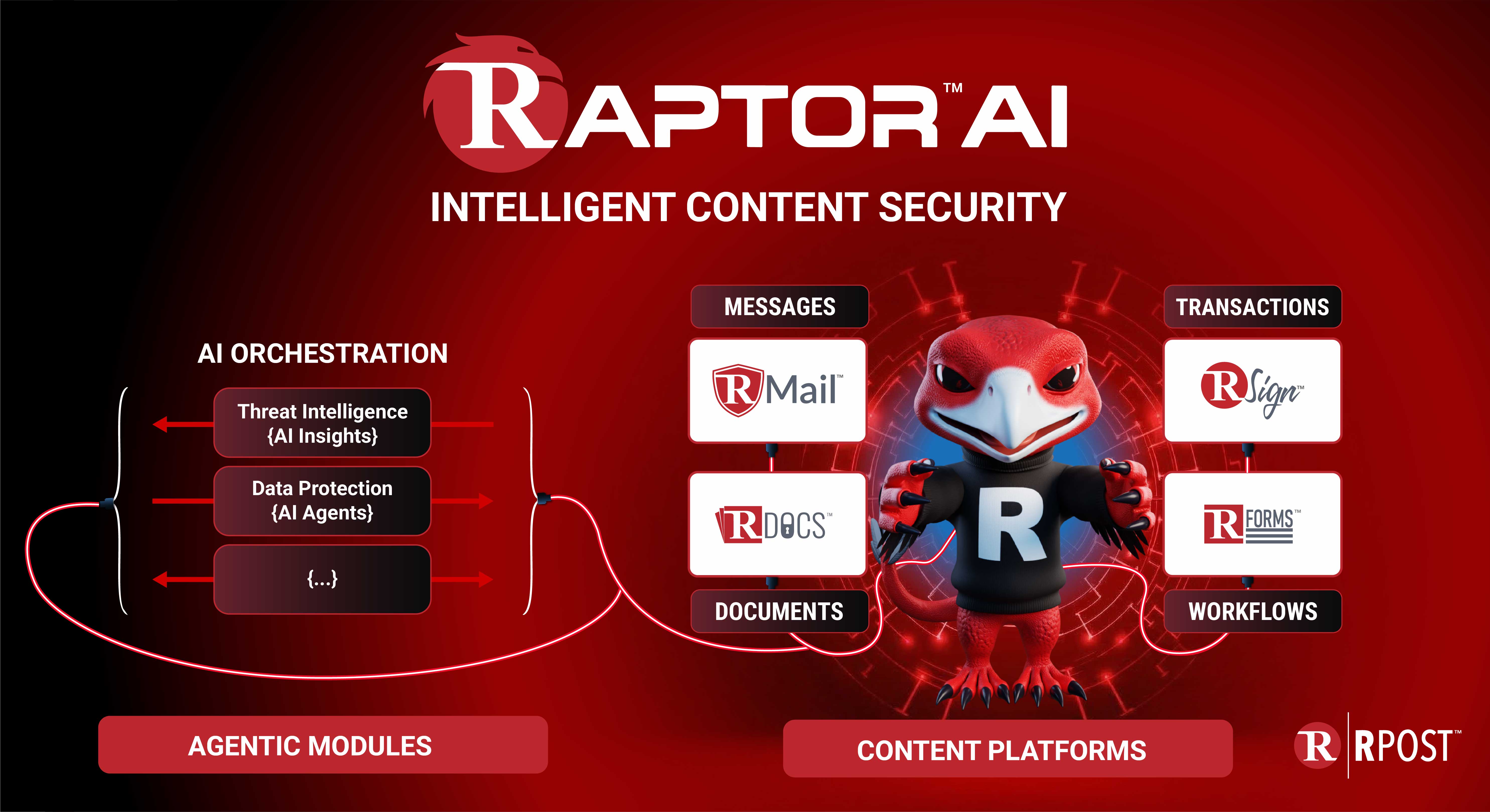 RAPTOR™ is RPost’s AI that uniquely can see otherwise unseen cybercriminal interaction with one’s sensitive content even beyond endpoints, curate Internet forensic threat data related to this anomalous activity, attribute the threat to a threat actor, then agentically and pre-emptively auto-lock this leaked content before seen, evidencing this killed content beyond endpoints, mitigating need to report a breach and mitigating cybercrime build-up.